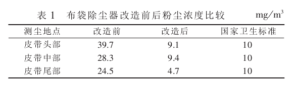 從測試數(shù)據(jù)可看出,改造后的粉塵濃度均小于_標準10 mg/m;,有效地_了現(xiàn)場工作環(huán)境,_了工作人員的身體健康,提高了輸煤車間現(xiàn)場文明生產(chǎn)水平。
