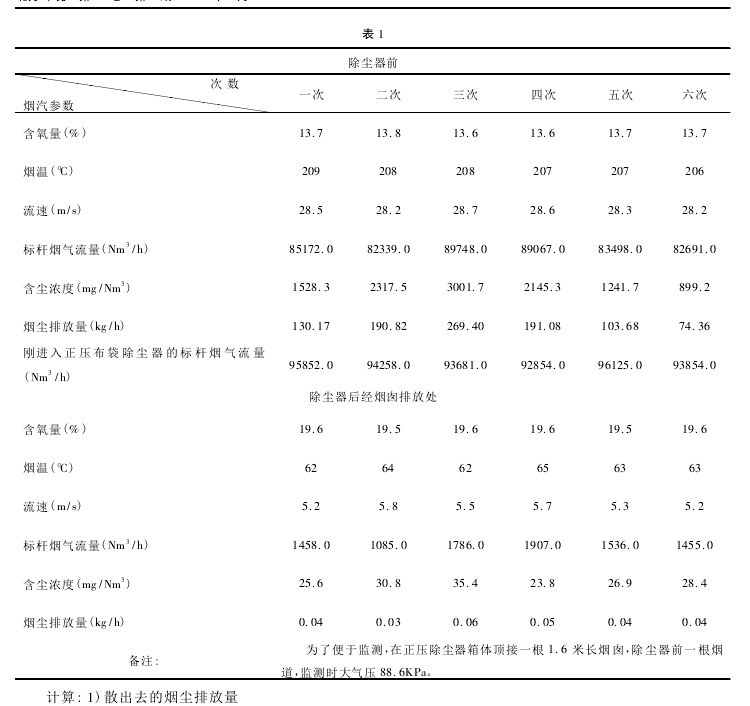 通過比較正壓布袋除塵器和負(fù)壓布袋除塵器的六組排放量,可以得出結(jié)論: 正壓布袋除塵器監(jiān)測(cè)和計(jì)算的結(jié)果與負(fù)壓布袋除塵器準(zhǔn)確監(jiān)測(cè)結(jié)果基本相同,誤差很小,所以這種方法可行。