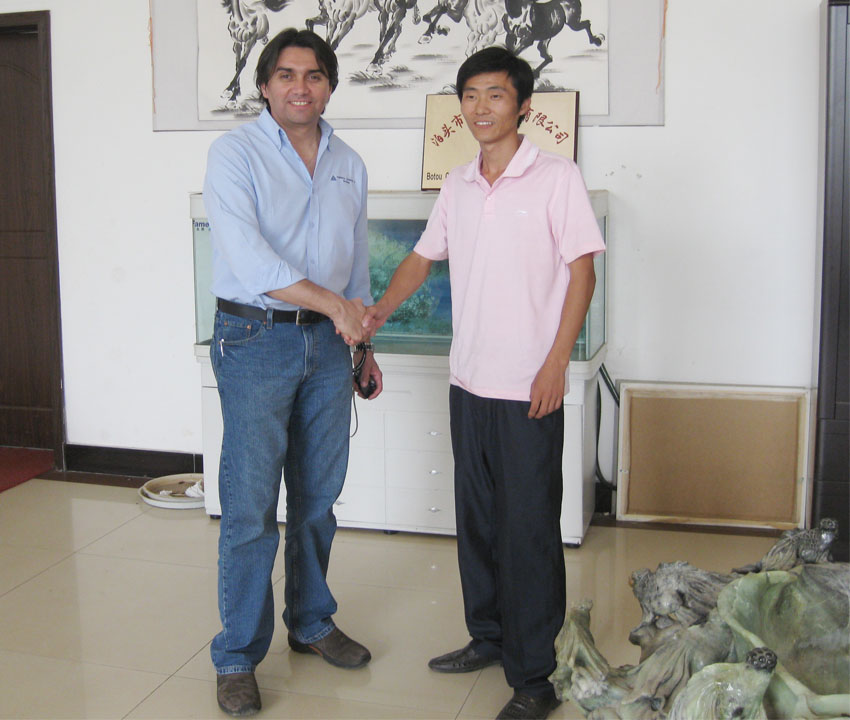 智利客戶在采購除塵骨架及配套除塵布袋后,與康潔環(huán)保領(lǐng)導(dǎo)人合影留念,祝賀:合作成功。 |